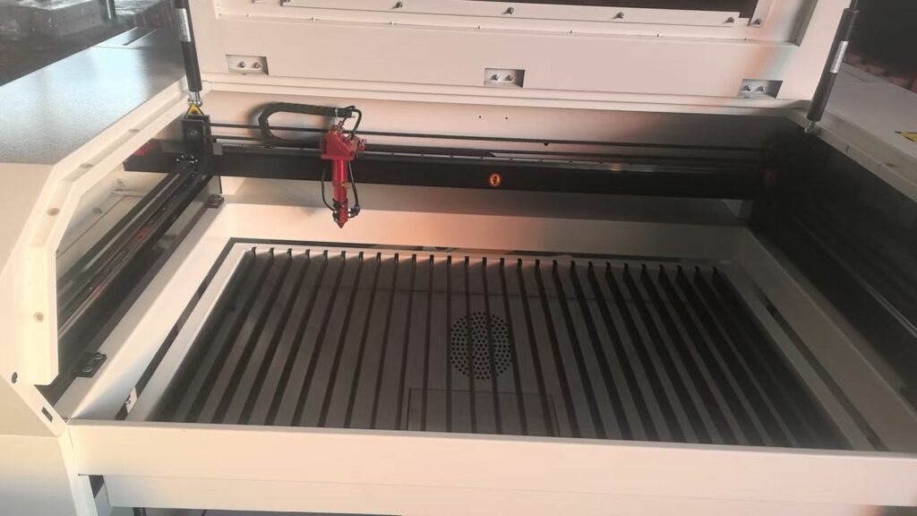 Laserzuschnitt für Kunststoffe und verschiedene Materialien unter Einsatz eines CO₂-Lasers mit einer Schneidgröße bis 1200 mm × 800 mm.